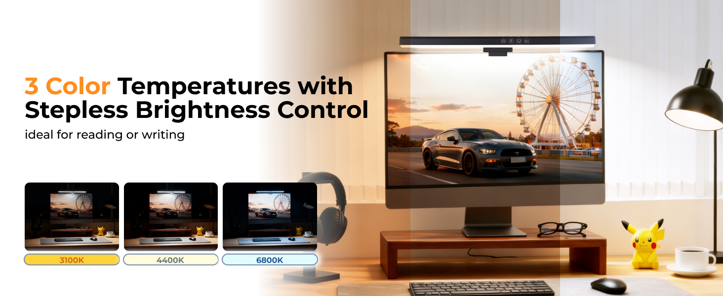 Stepless Brightness Dimmer: finds the right light intensity for your task and preference with ease -